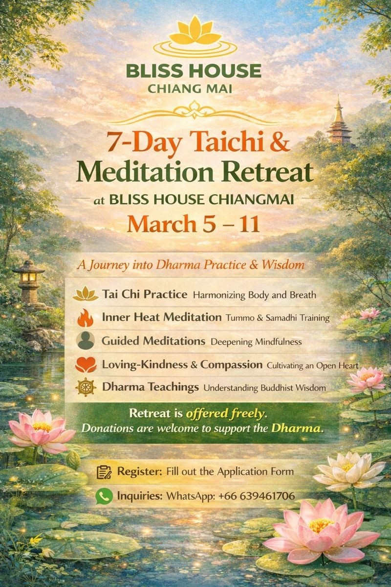 7-Day Taichi & Meditation Retreat March 5-11 We warmly invite all those eager to deepen their understanding and practice of Buddhism to join us for this retreat. Together, we will explore the path from ordinary being to Buddhahood, experience the wisdom and compassion of the Dharma, and journey toward the bright light of awakening. #gallery-1 { margin: auto; } #gallery-1 .gallery-item { float: left; margin-top: 10px; text-align: center; width: 25%; } #gallery-1 img { border: 2px solid #cfcfcf; } #gallery-1 .gallery-caption { margin-left: 0; } /* see...
